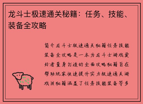 《魔卡幻想16》是一款备受玩家喜爱的卡牌类游戏,拥有庞大的卡牌库和丰富的游戏玩法。本文将为您提供一份详尽的攻略,助您成为卡牌最强王者! 卡牌获取与培养 卡牌获取主要通过抽卡、活动获取。培养方面,强化、...